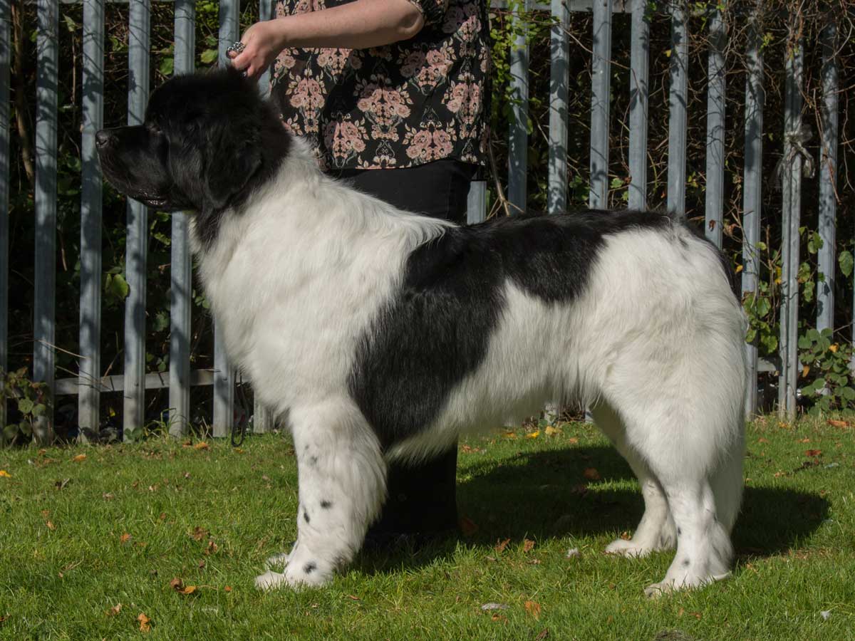 2nd - Mrs S M Benyon - Tartandug Ruff Pup Of Kaijasholme ShCM: Landseer – Nice shaped head, well set ears, good pigmentation with a huge amount of bone and tight feet, good length of back and well set tail. Best Landseer Bitch