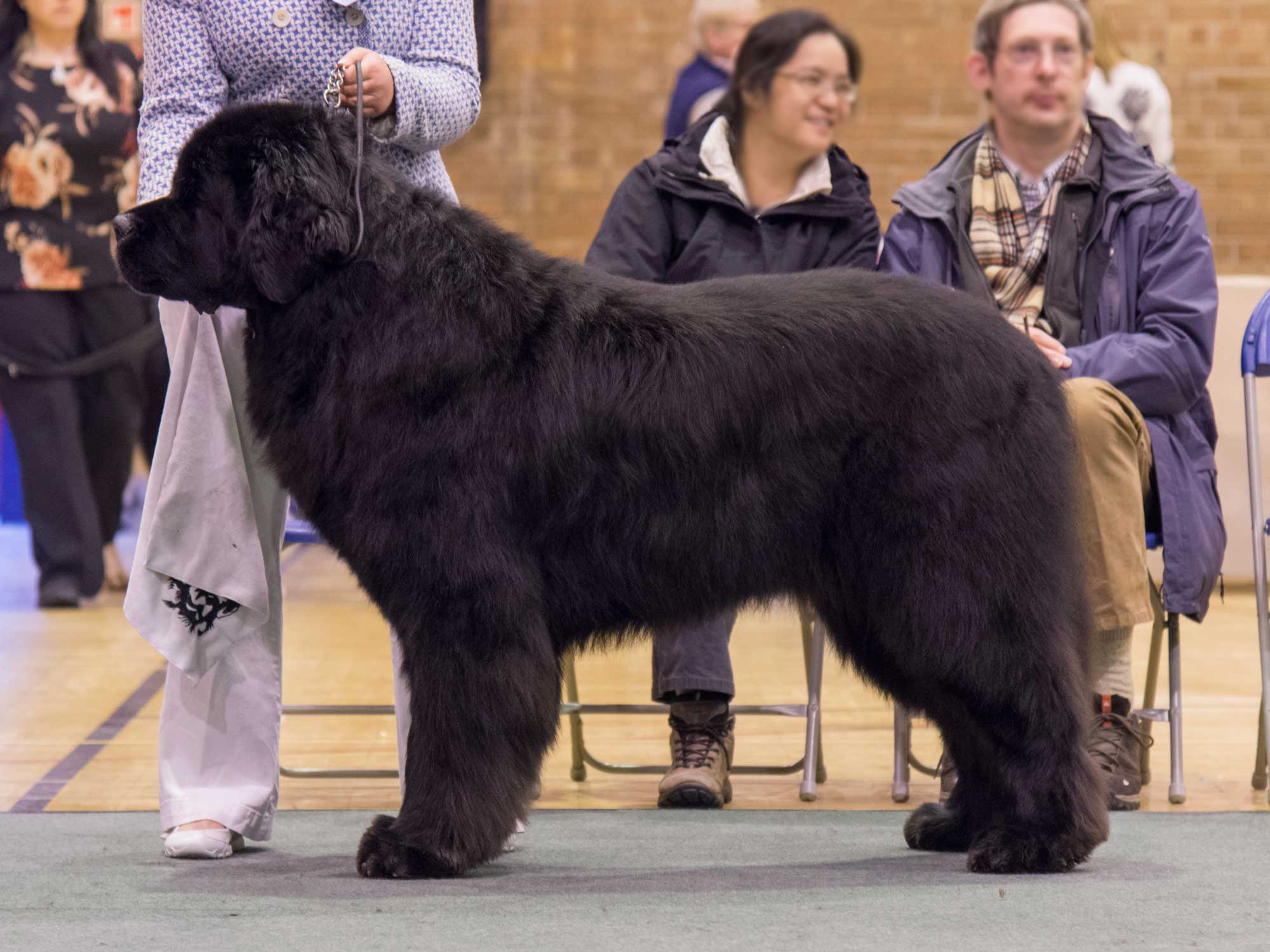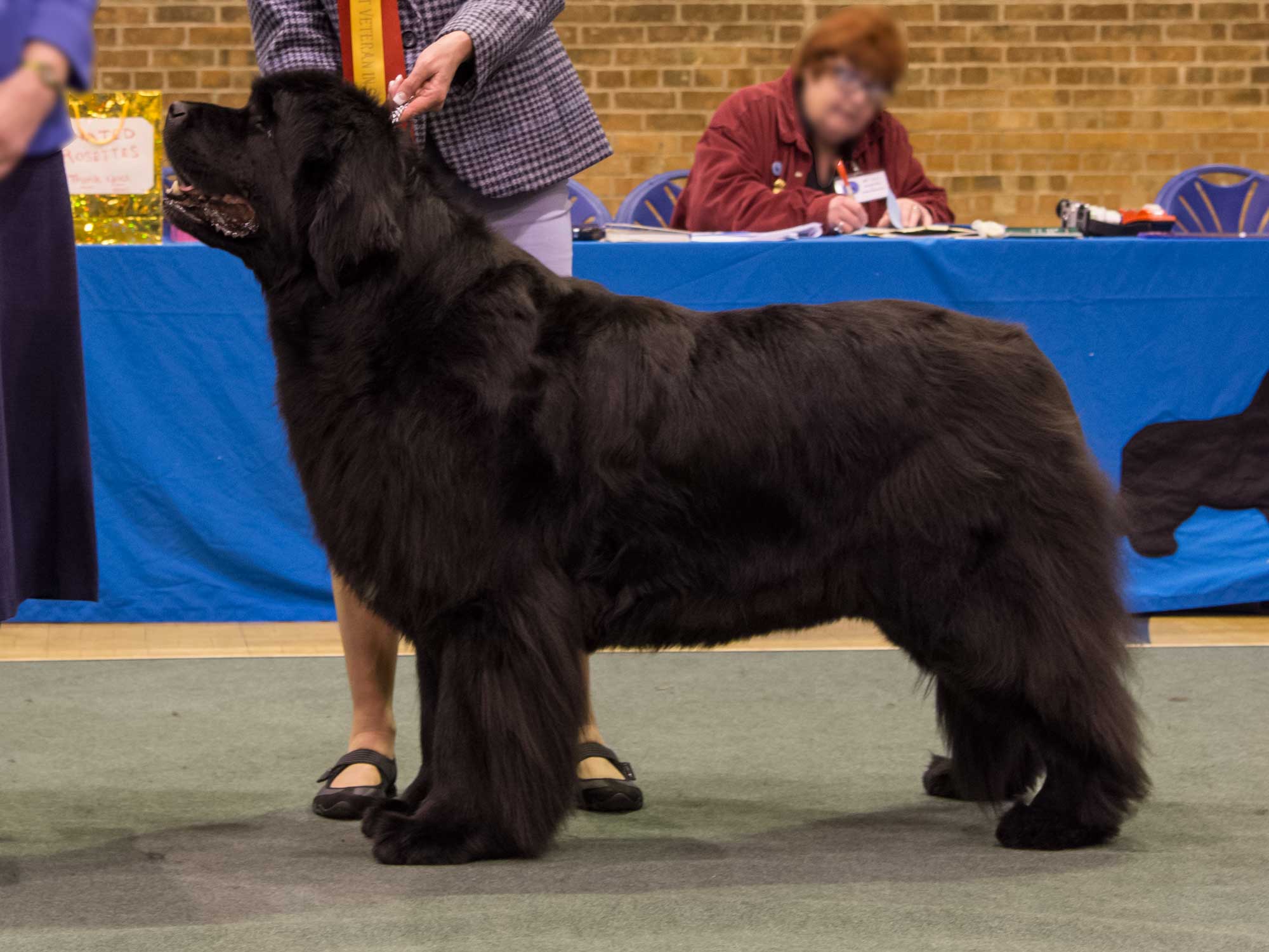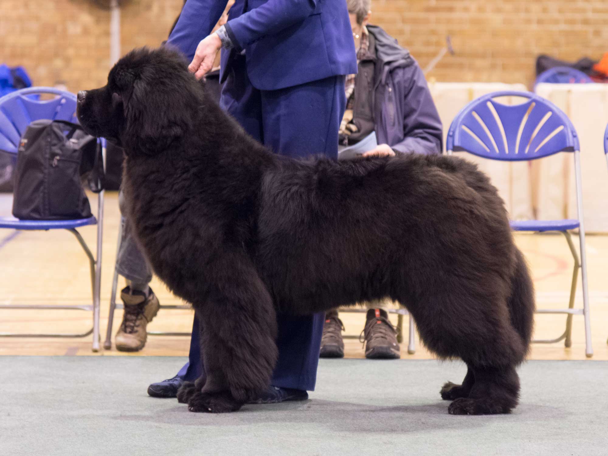 Thank you to the club for the invitation, a breed club show is very special, particularly for me, the Northern Club. A huge thank you to my stewards for all their hard work and to the committee for theirs in producing a well run show. I was delighted with my entry and as always temperaments of the exhibits were superb. A well-constructed Newfoundland moved at its correct pace, and that pace is individual to each dog, stops the ‘roll’ and like a sailing boat coming onto the plane achieves a seemingly light footed effortless power around the ring. The big ring is unforgiving and does not allow even the most skilled handler to hide very much. All my major adult winners showed this trait. The puppy and junior classes were very full so many deserving babies went unplaced but to see so much quality coming on speaks well for the future of the breed. The only negatives are some short tails, lower eyelids could be a little closer to the orbit on some dogs but eyes have improved greatly and pleased to see there were no health issues. Although front construction is good excessive speed is causing some dogs to ‘pin ‘in too much upsetting the balance, however watching as they slow down the front movement is true. Showing is not a race and for some is causing a loss of kinetic balance and losing exhibitors placings.