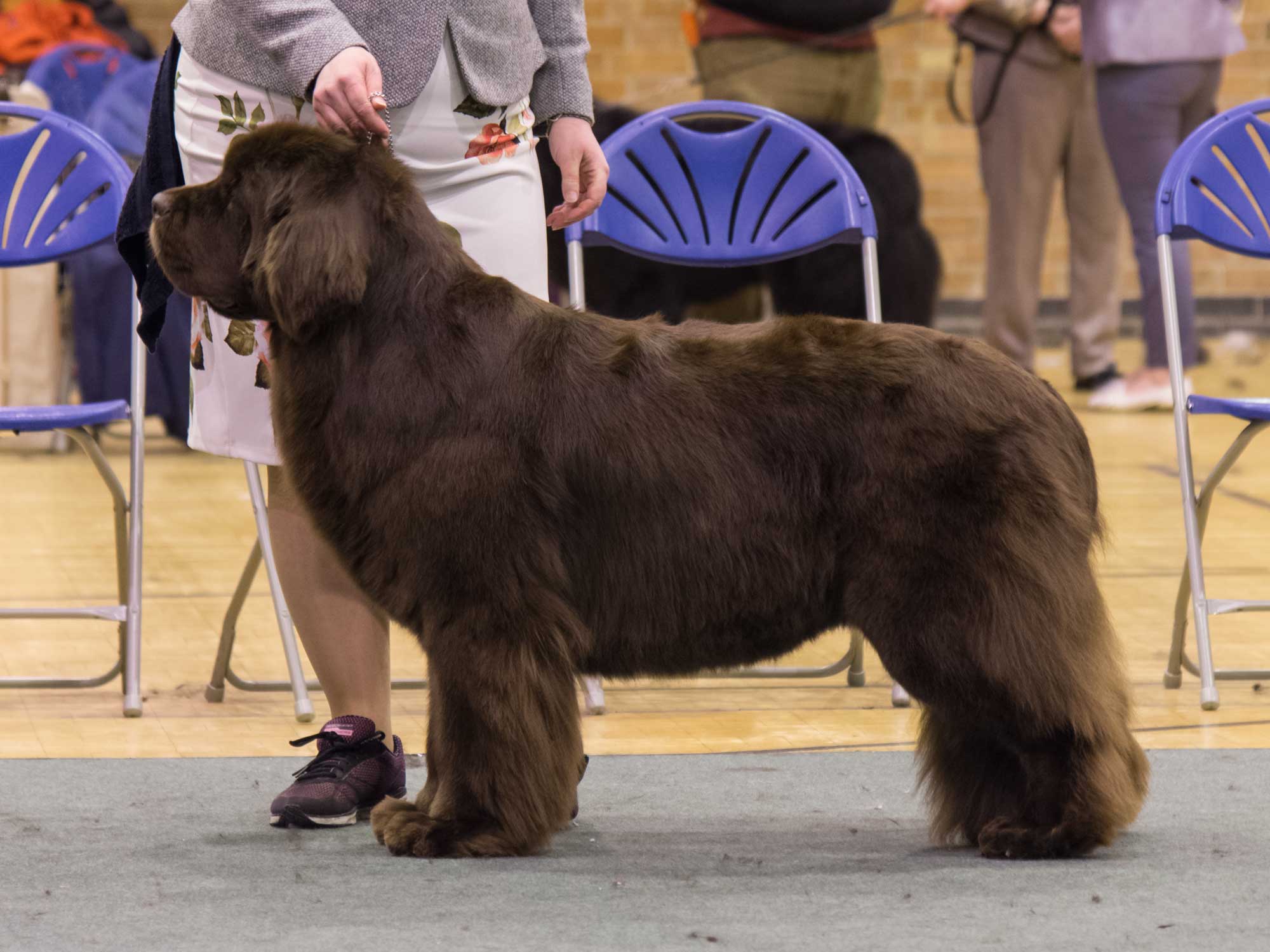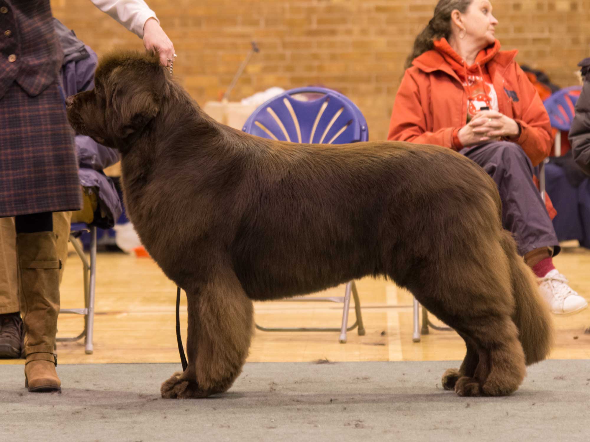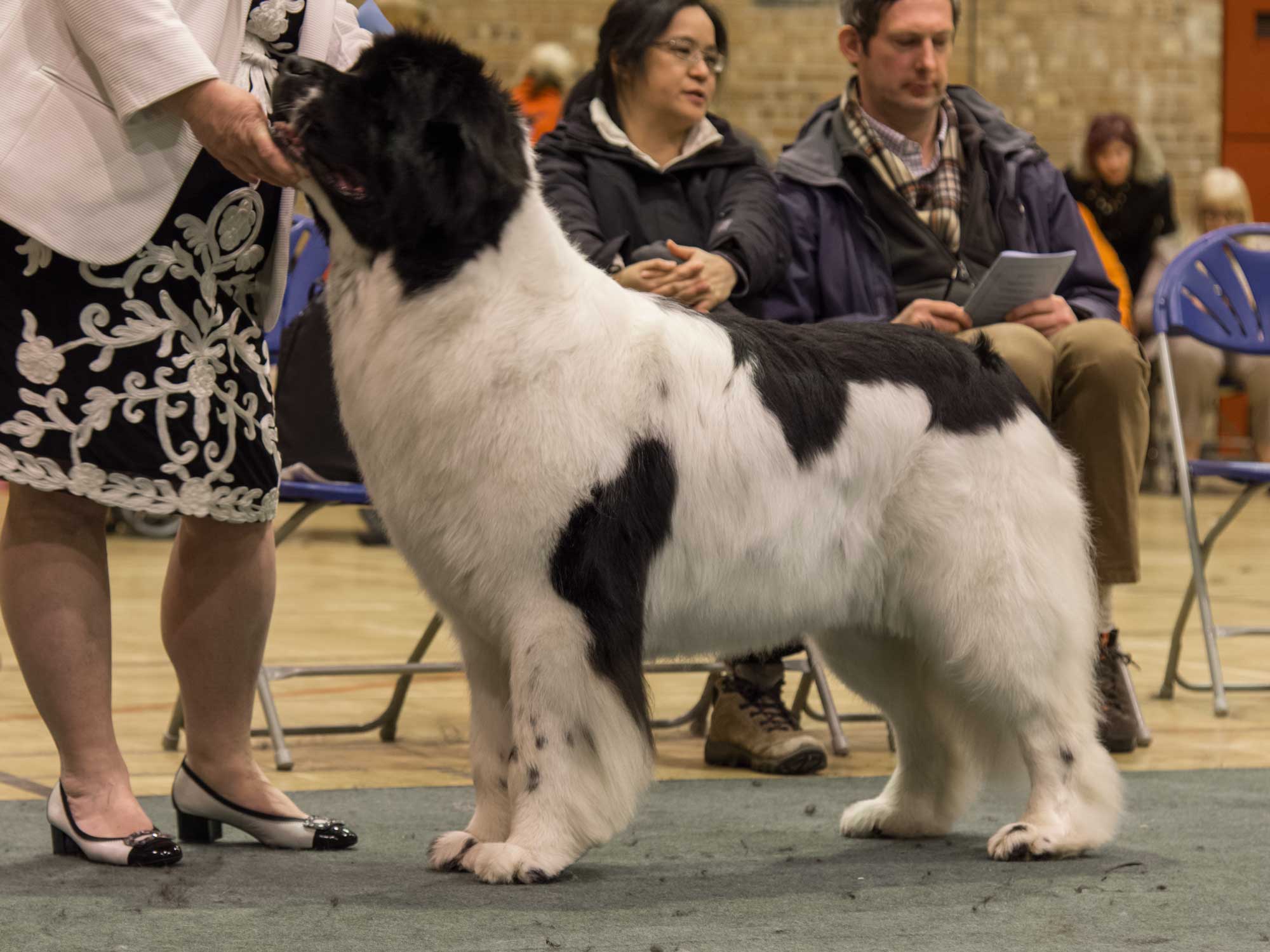Thank you to the club for the invitation, a breed club show is very special, particularly for me, the Northern Club. A huge thank you to my stewards for all their hard work and to the committee for theirs in producing a well run show. I was delighted with my entry and as always temperaments of the exhibits were superb. A well-constructed Newfoundland moved at its correct pace, and that pace is individual to each dog, stops the ‘roll’ and like a sailing boat coming onto the plane achieves a seemingly light footed effortless power around the ring. The big ring is unforgiving and does not allow even the most skilled handler to hide very much. All my major adult winners showed this trait. The puppy and junior classes were very full so many deserving babies went unplaced but to see so much quality coming on speaks well for the future of the breed. The only negatives are some short tails, lower eyelids could be a little closer to the orbit on some dogs but eyes have improved greatly and pleased to see there were no health issues. Although front construction is good excessive speed is causing some dogs to ‘pin ‘in too much upsetting the balance, however watching as they slow down the front movement is true. Showing is not a race and for some is causing a loss of kinetic balance and losing exhibitors placings.